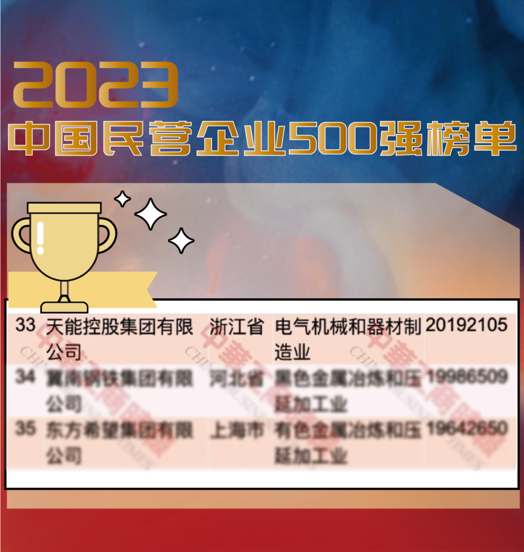 第33位!BB贝博艾弗森在中国民企500强榜单跃升7名